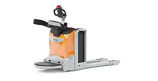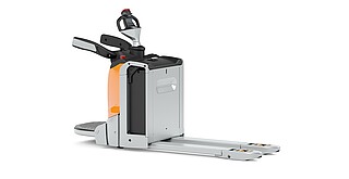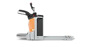 Manoeuvrability and intuitive operation taken to a new dimension – the EXH-SF 16C/20C low lift pallet truck with folding stand-on platform is the smart assistant for light to medium duty horizontal transport operations. With its impressively slim dimensions, the pallet truck is very easy to manoeuvre when loading and unloading HGVs and can be operated with precision thanks to the electric steering and the innovative STILL tiller. The innovative STILL LED or touch display integrated in the tiller head provides even more working ergonomics and an excellent overview of all relevant truck data.